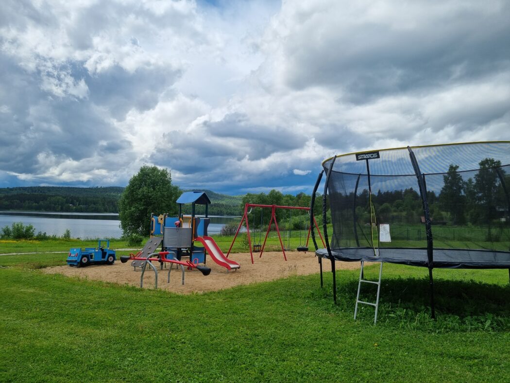 - Lekplats med studsmatta/skyddsnät