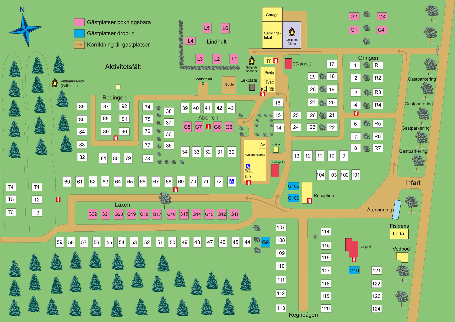 På campingen finns en stor samlingslokal som är öppen varje fredag och lördagkväll. Under sommarhalvåret är grillen tänd fredagar och lördagar och under vinterhalvåret endast lördagar. Som gäst är du välkommen till såväl samlingslokalen som grillen för att träffas och umgås med övriga gäster på campingen.