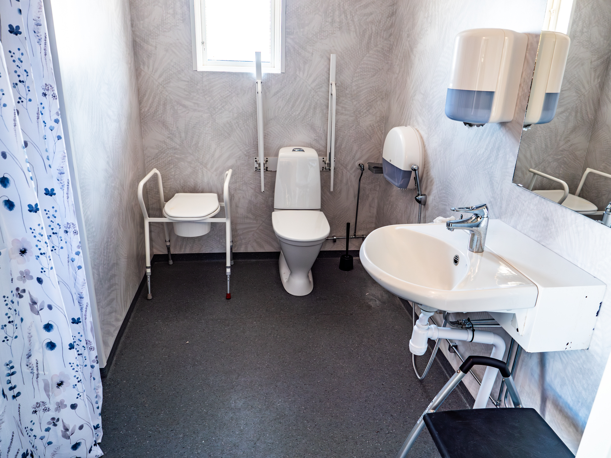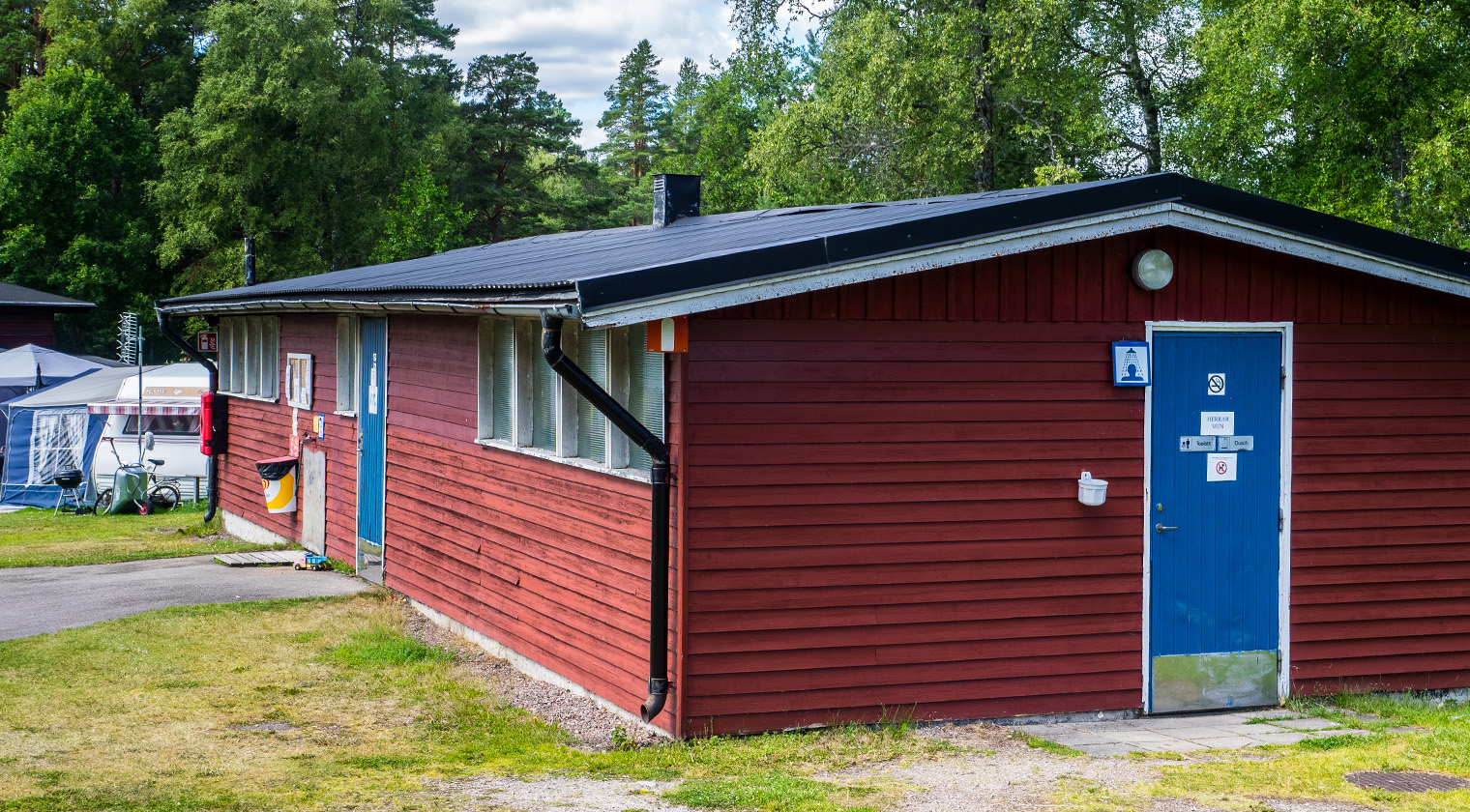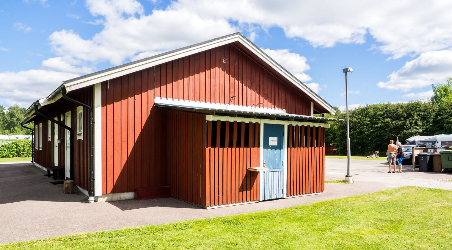 - Servicebyggnad med toaletter och duschar, kök med microvågs-ugnar, spisar, ugnar samt tvättstuga.