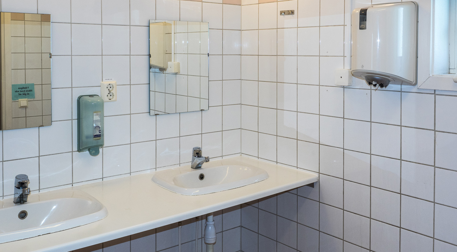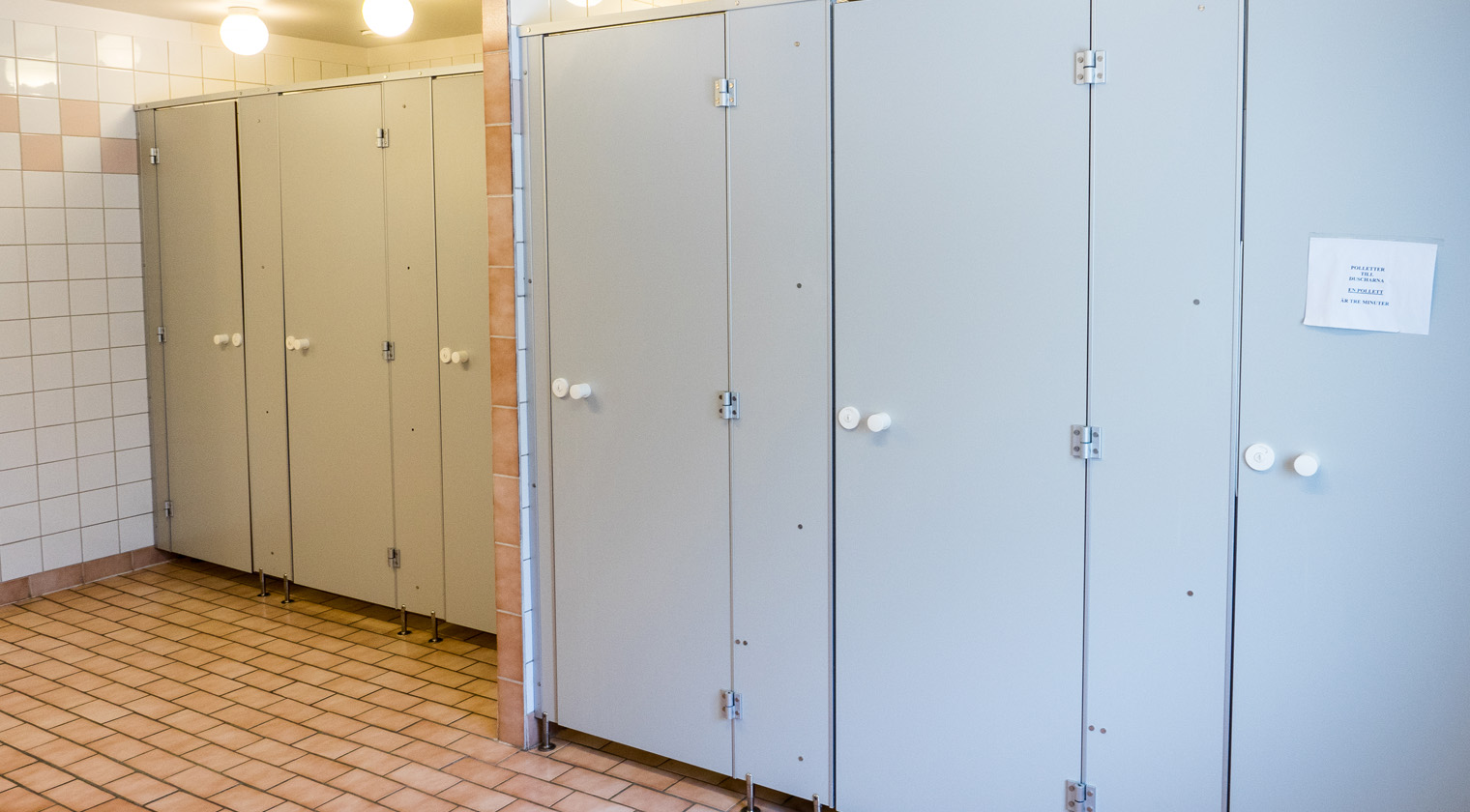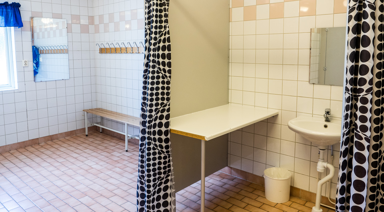 - Servicebyggnad med toaletter och duschar, kök med microvågs-ugnar, spisar, ugnar samt tvättstuga.