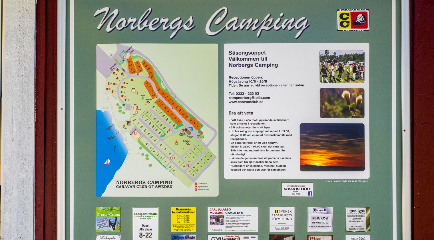 - Norbergs kommuns centrum med affärer, restauranger och banker ligger endast ca 500 m från Campingen.