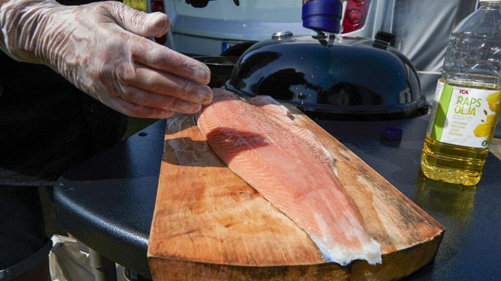 • Gnid in laxen med matolja på båda sidor.