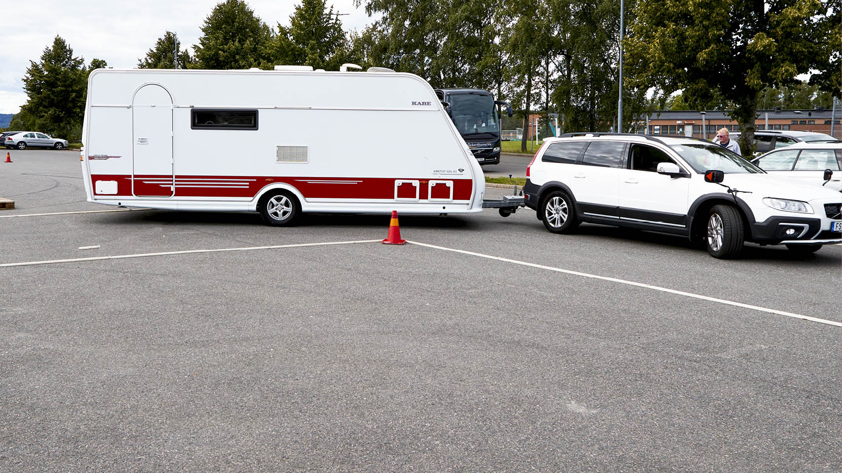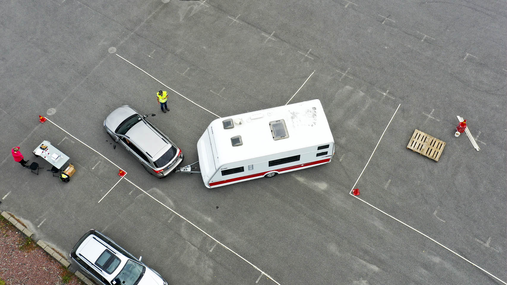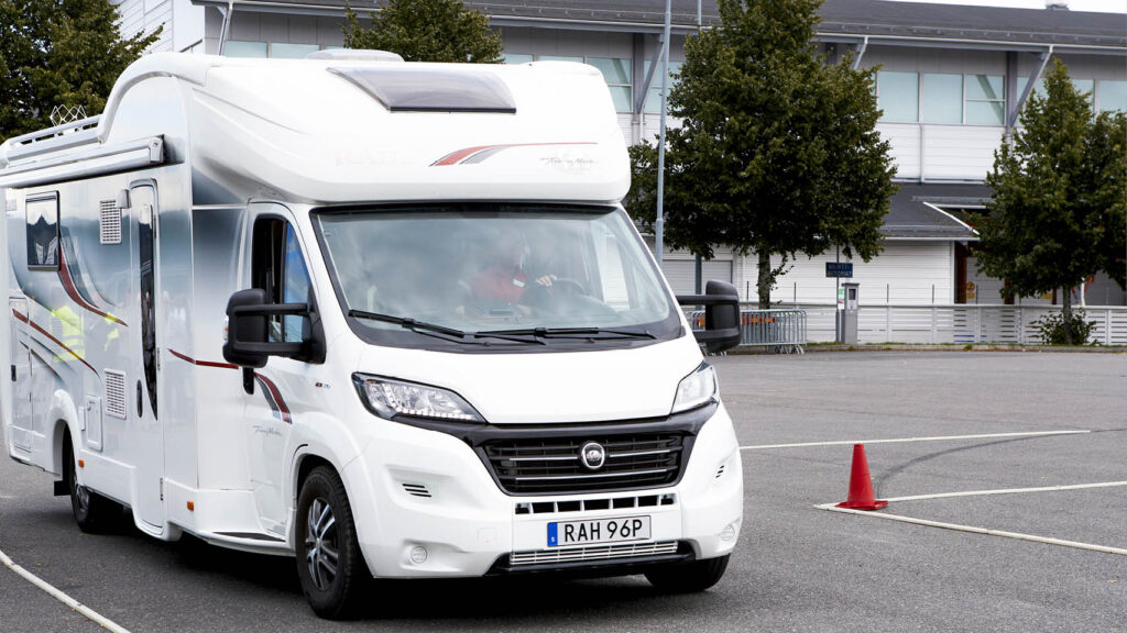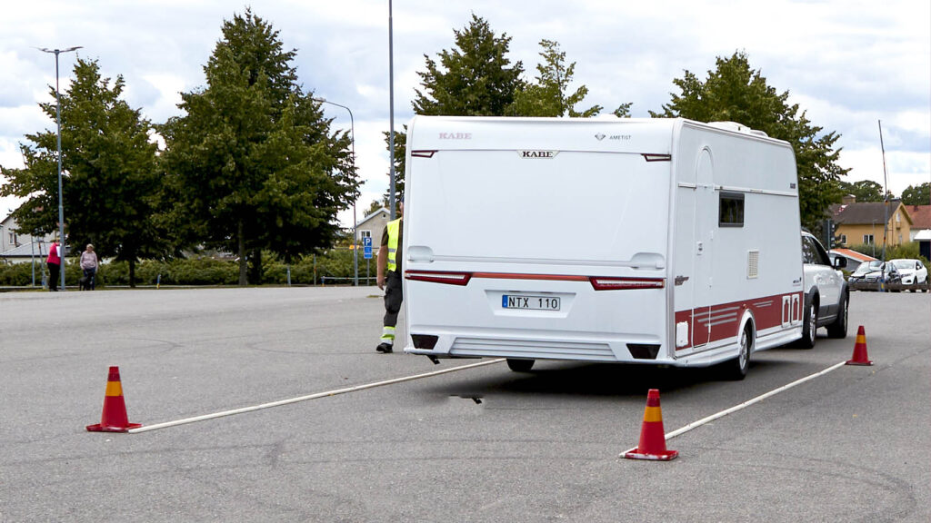 Slalomkörning, vändning, rak backning och fickparkering. För att höja körskickligheten och främja trafiksäkerheten anordnar Caravan Club manöverkörning med husvagn och husbil.