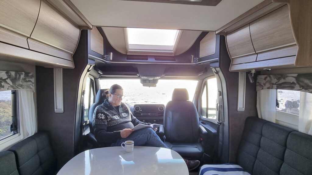 – Att du har ett rullande hem. Du vet var du har jackor, byxor, besticken och grillen. Vi har så stort utrymme i husbilen att det är enkelt att förvara. Förr i tiden backpackade vi en del, och jag minns hur man släpade runt på sina saker. Det är helt borta nu, säger Anders och skrattar.