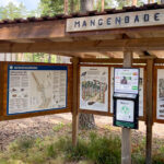 I själva verket ligger CC Mangenbaden inom själva naturvårdsområdet och det märks att gästerna har nära till det naturen har att erbjuda. Den här julidagen står tyska tältare med flera kastspön lutade mot bilen på Strandhyllan, ett av campingens områden med gästplatser. Strax intill har en tysk familj parkerat sina MTB-cyklar bredvid husvagnen.