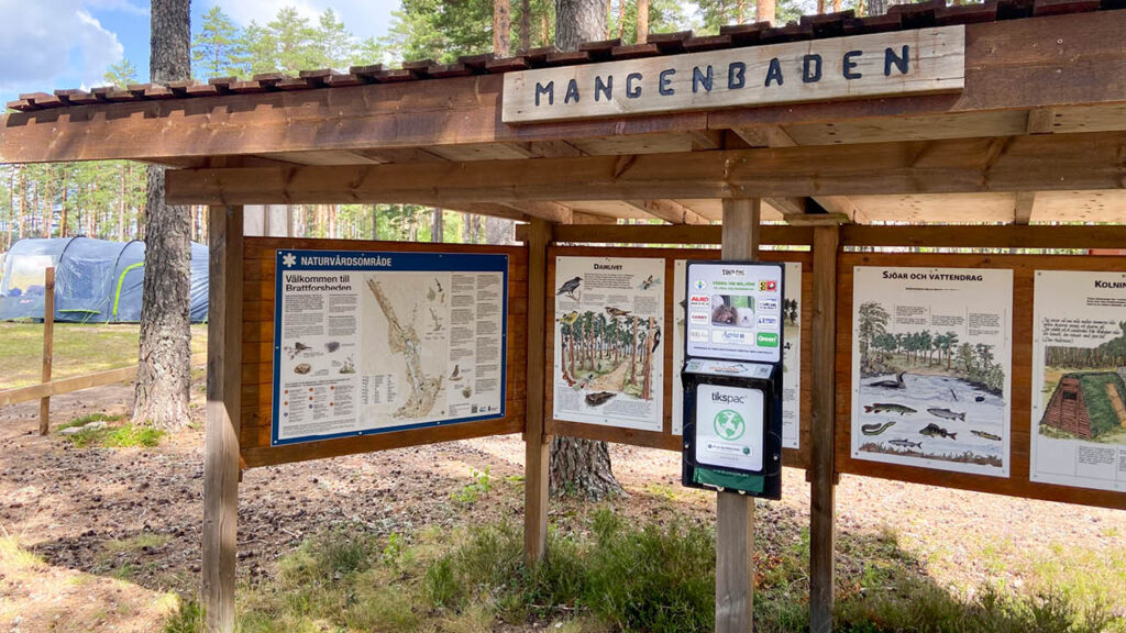 I själva verket ligger CC Mangenbaden inom själva naturvårdsområdet och det märks att gästerna har nära till det naturen har att erbjuda. Den här julidagen står tyska tältare med flera kastspön lutade mot bilen på Strandhyllan, ett av campingens områden med gästplatser. Strax intill har en tysk familj parkerat sina MTB-cyklar bredvid husvagnen.