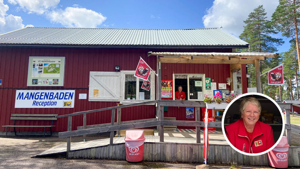 Hon är säsongare på Mangenbaden sedan 2018 och styrelseledamot i Caravan Clubs Värmlandssektion. Tillsammans med ordföranden Jan-Ola Persson visar hon runt och berättar om campingen, som varit i Caravan Clubs drift sedan 2007.