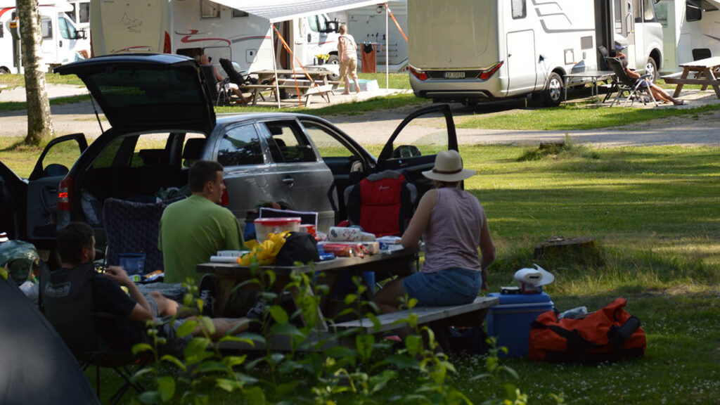 Det finns 160 campingtomter med el och de flesta står på grönt gräs. Alla har nära till servicehus eller den ”egna” badplatsen.