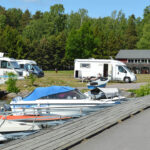 Turistvänliga Motala har gott om ställplatser. Den senast anlagda finns hos stadens segelklubb. Vi besökte platsen som ligger på en udde i Vättern.