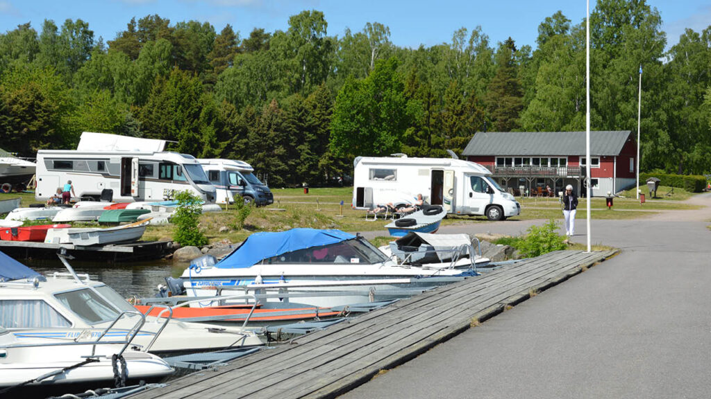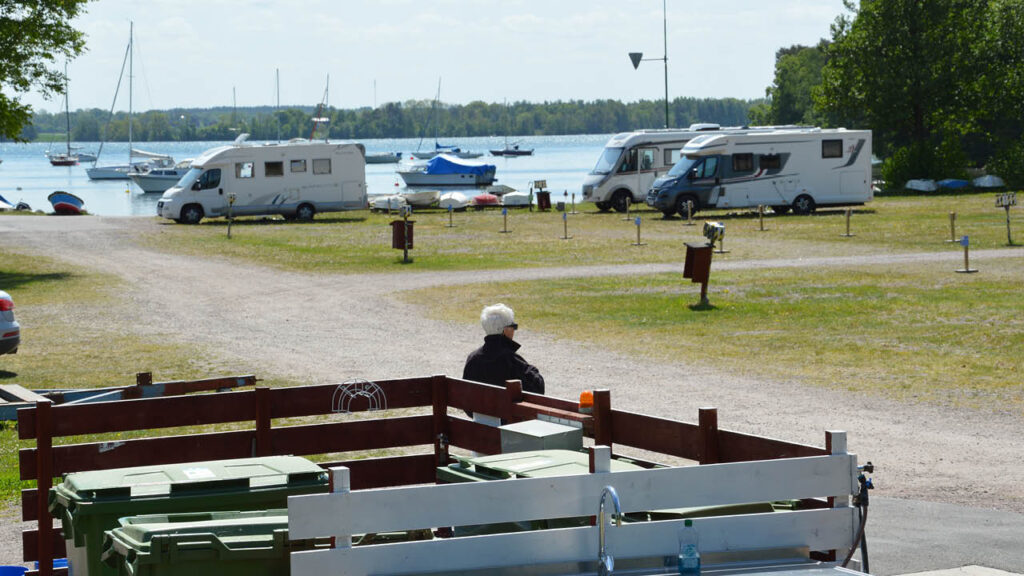 Turistvänliga Motala har gott om ställplatser. Den senast anlagda finns hos stadens segelklubb. Vi besökte platsen som ligger på en udde i Vättern.