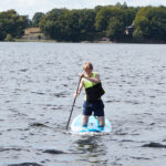 – Det är kul – speciellt i en insjö när det inte är så mycket vågor. Det är en perfekt sport att utöva som inte kräver så mycket: en flytväst bräda och paddel. Vi lånade våra brädor här och höll oss mest runt bryggan. Det är lite svårt att stå upp så vi körde lite på knä också, säger han.