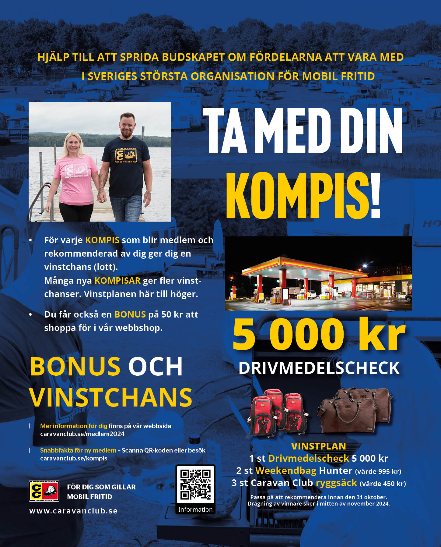 - Snabbfakta för ny medlem – scanna QR-koden i bilden ovan eller besök caravanclub.se/kompis