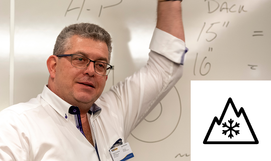 Han börjar sin presentation på campingkryssningen med att varna för att stirra sig blind på de uppgifter om däckstryck som finns i fordonstillverkarnas handböcker.
