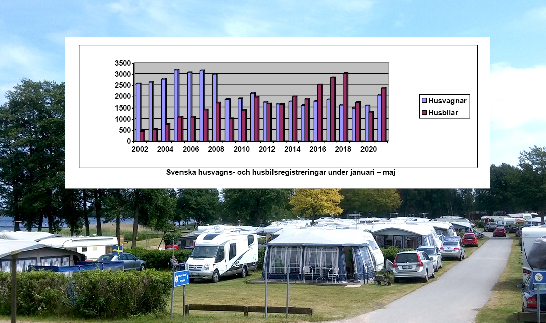 Maj månads husbilsregistreringar visar 544 fordon, medan det i maj föregående år registrerades 443 husbilar. Hittills under 2021 har det totalt registrerats 2 390 husbilar, medan det under motsvarande period 2020 registrerades 1 326. Det innebär en ökning med över 80 procent för år 2021.