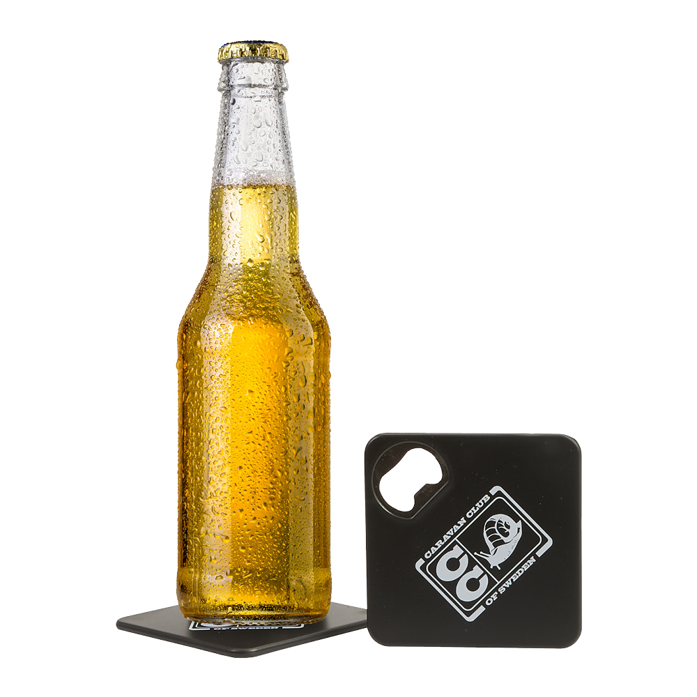 Underlägg och kapsylöppnare i ett, med halkfri yta på undersidan.