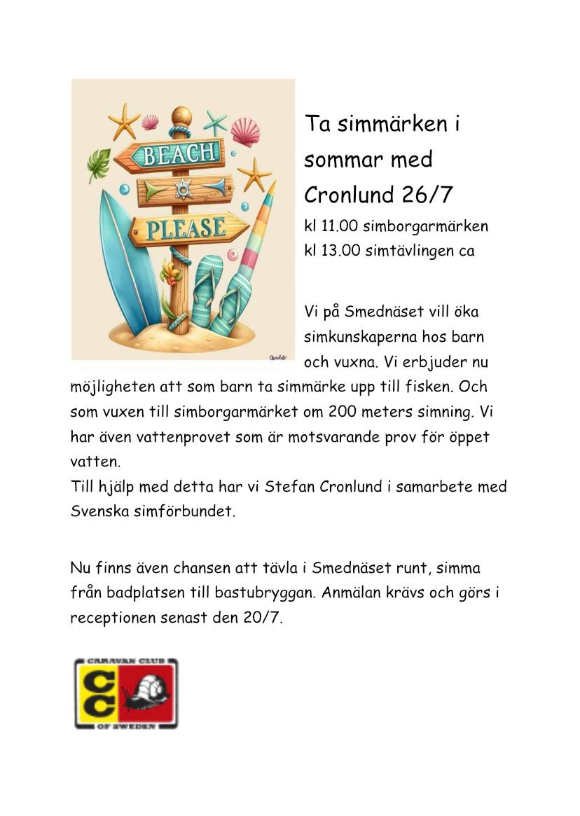 Caravan Club Smednäset Smednäsvägen 30, Linghed, SwedenTa simmärken i sommar med Cronlund