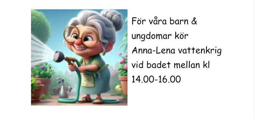 Caravan Club Smednäset Smednäsvägen 30, Linghed, SwedenAnna-Lena kör vattenkrig vid badet för våra barn och ungdomar kl. 14:00 - 16:00